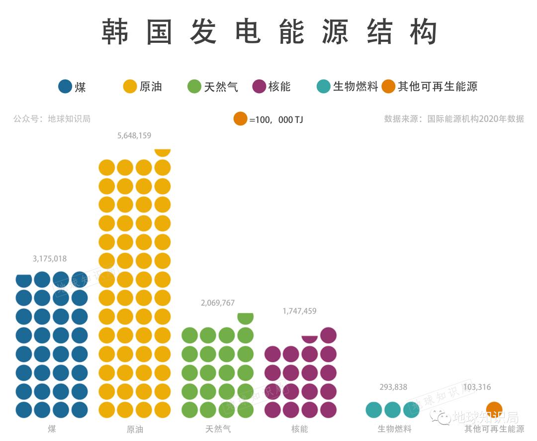 韩国地底下根本没有埋着天然气。每年要买这么多天然气来发电,花钱就不少。于是文在寅政府别出心裁提出发展太阳能政策,但是韩国国土面积小,不得不砍掉森林安装太阳能板,面积越来越大,引发环保人士唾骂。在能源问题上左右不讨好的文在寅总统于2022 年卸任,丢下了很多“烂摊子”。