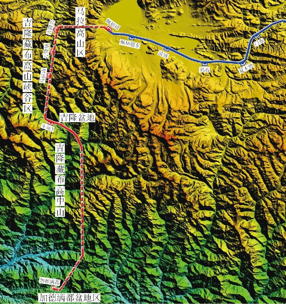 中尼铁路线路位于青藏高原南部,线路经行区域地势北高南低、西高东低,由西向东呈阶梯式递降,由北向南波状起伏,高山、峡谷、冰川、河流众多。