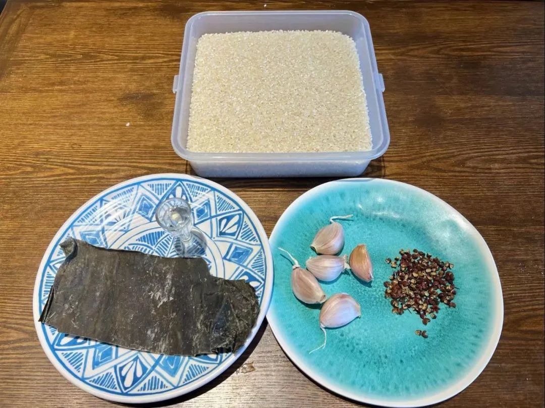 在存米的容器里放入一个装有白酒的干净酒杯,瓶口要高于米面,无需密封,确保其稳固不会溢出即可。