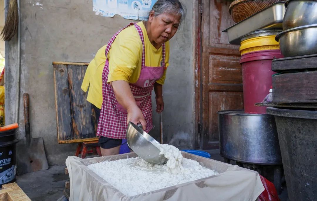 徐梅今年35岁,她的豆制品制作技艺是家传手艺,传到她这代是第四代,已经有将近百年的历史了。徐梅家的手工作坊以生产豆干为主,产品很畅销。