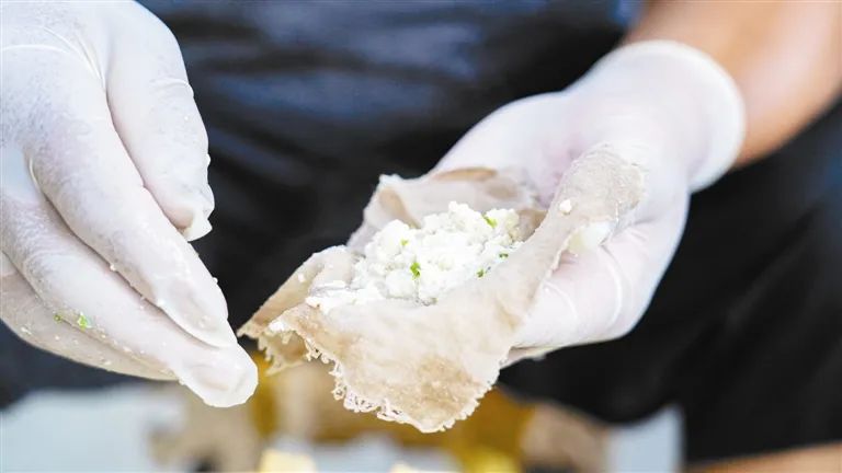 “制作豆干有拣豆、泡豆、打浆、煮浆、滤浆、点豆花、包块、压榨和腌制等10多道工序。”徐梅介绍,她家的豆干至今仍沿用传统的手工方法制作,包块和腌制是她家的一个特色。包块是用一张四方纱布将豆花包成小块,然后压榨成豆干,最后用食盐和荞麦烧制成的灰进行腌制,这样做出来的豆干鲜嫩而有韧劲。