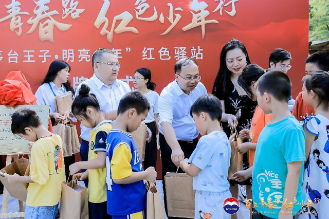 启动仪式当天,杨秀权、毛鸿山等在井冈山罗浮镇,为全省001号“茅台王子·红色驿站”揭牌,并为留守儿童送去了爱心大礼包。小朋友与来宾们“小手牵大手”,一起讲红色故事、绘制军旗,“红色驿站”里不时传来孩子们稚嫩、欢快的笑声……