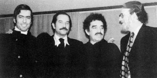 左起:巴尔加斯·略萨、卡洛斯·富恩特斯、加西亚·马尔克斯、何塞·多诺索
