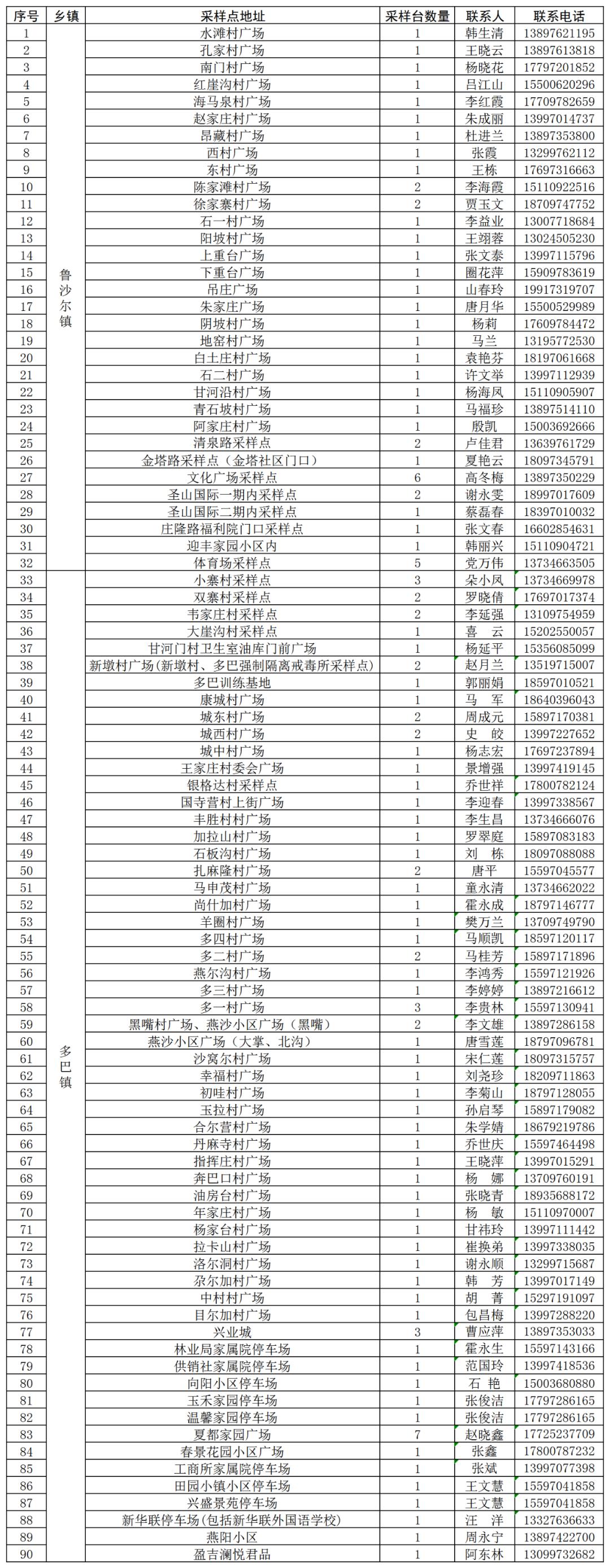 湟中区鲁沙尔镇和多巴片区核酸检测采集点明细表