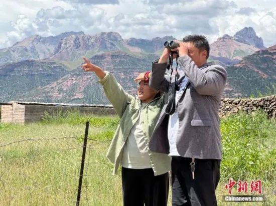 图为8月10日,义西塔生(右)和女儿一起观察野生动物。李江宁 摄