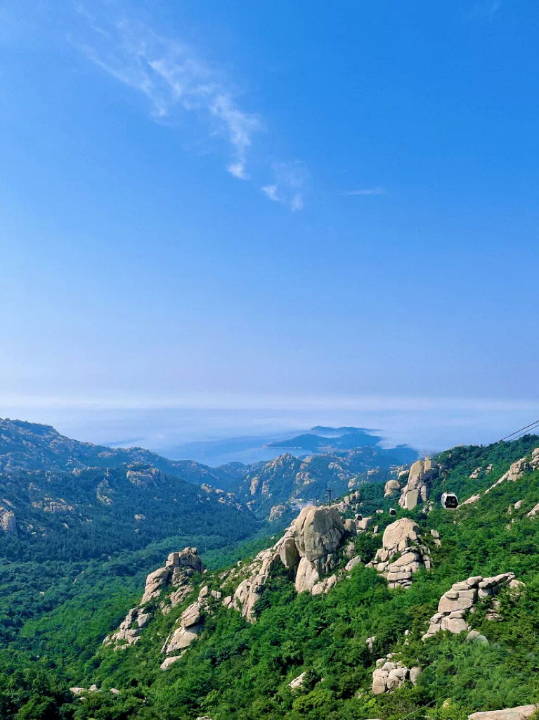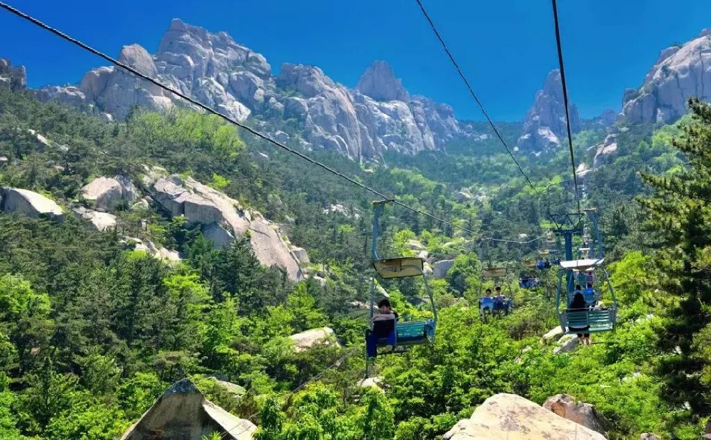 全长约1000米的仰口缆车途径怪石林、仙桃石、寿字峰,可以一边享受着山间清爽的微风,一边在空中近距离感受崂山奇峰怪石的魅力。
