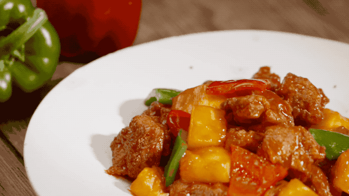 “菠萝咕噜肉”以酸甜酥脆的口感号称“白饭杀手”,只有吃过的人才知道多么停不下来。把菠萝、猪里脊肉切丁,青红辣椒切块备用,猪里脊肉裹上蛋清再滚一下面粉,热油下锅,炸至金黄变色捞出,再调一个甜酸汁均匀地裹上每一块咕噜肉,最后加入菠萝和青红辣椒块一并翻炒,那个酸甜香味涌上鼻尖,入口酥脆,一口菠萝一口肉,既不觉得腻也不觉得“厚重”,轻盈之感倒像是在恋爱。