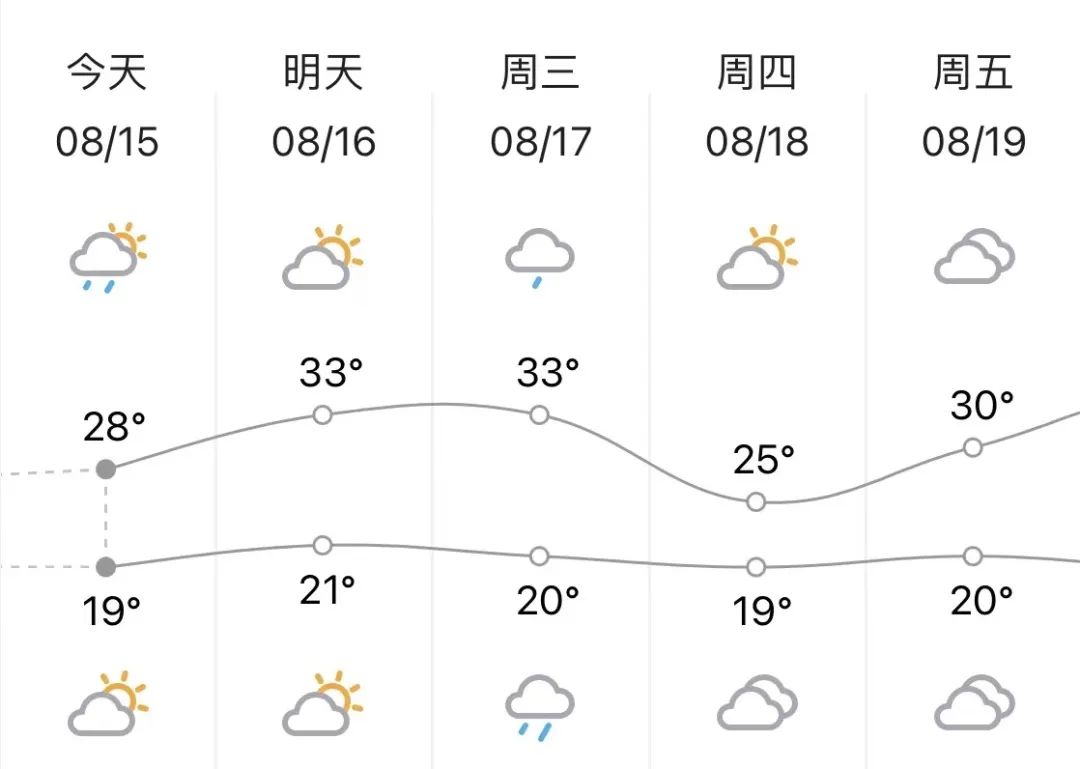 多云转小雨,气温21到33℃