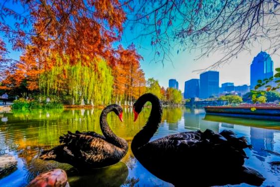 鄞州公园是省内最大城市中央湿地公园,公园内公园36%面积为水域河网,1.7万米长的岸线优雅摆动;