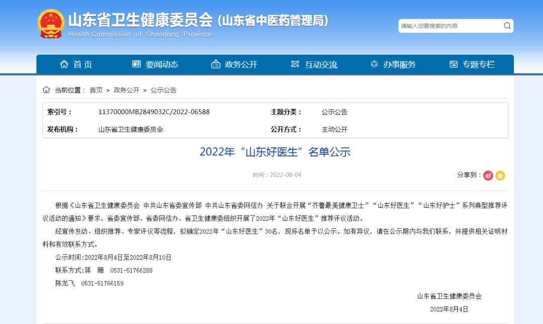 原标题:《热烈祝贺!高唐县人民医院神经外科庄焕章荣获2022年“山东好医生”称号》