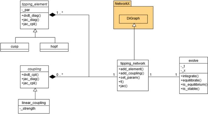 Wunderling 等人 [33] 介绍了用于研究交互的临界元素的开源软件包 PyCascades。该软件可用于查询在哪些条件下,可能在相互作用的动力系统中出现潜在的级联风险,并特别关注了临界元素。