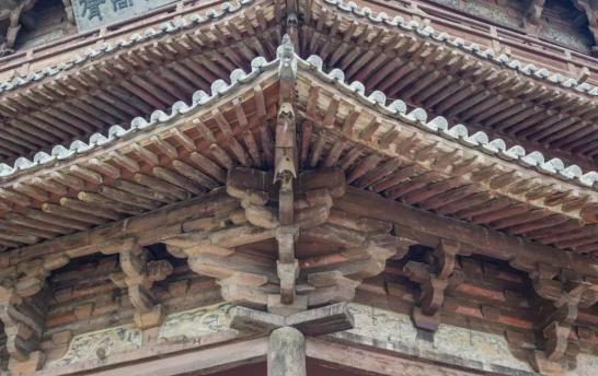 木塔从外看为五层,而实际为九层。每两层之间都设有一个暗层,暗层从外看是装饰性很强的斗拱平座结构,从内看却是坚固刚强的结构层,设计极为巧妙。