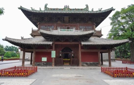 弥陀殿的梁架斗拱、琉璃饰件、门宽匾额、隔扇棂花、塑像壁画均为金代原物,历经沧桑,至今仍光彩夺目。