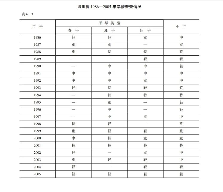 四川省1986—2005年旱情普查情况(图片来源:《四川省志·水利志》)