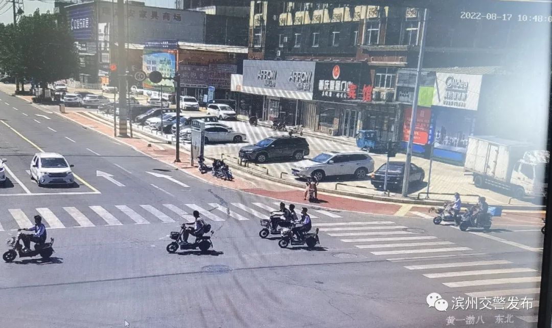 8月17日中午,滨城大队接支队指挥调度中心指令,有6辆二轮电动车在黄河一路渤海七路快速行驶,骑车人疑为学生,而且未戴头盔,更有甚者在道路上嬉笑打闹、曲线行驶。