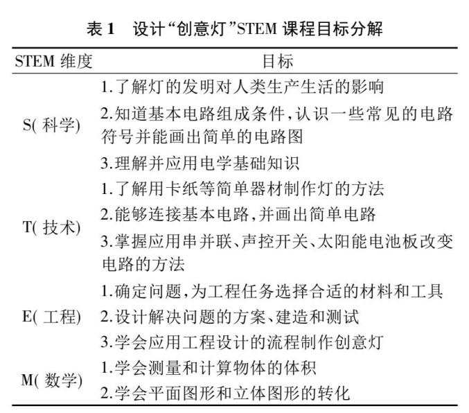 接下来,笔者将基于本设计模型,以设计“创意灯”为例,阐述整体STEM课程以及不同环节学习活动搭建的策略。