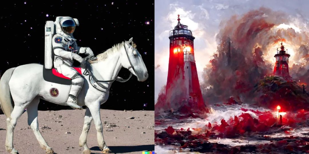 DALL-E 2(左)和 Disco Diffusion(右)的不同画风。