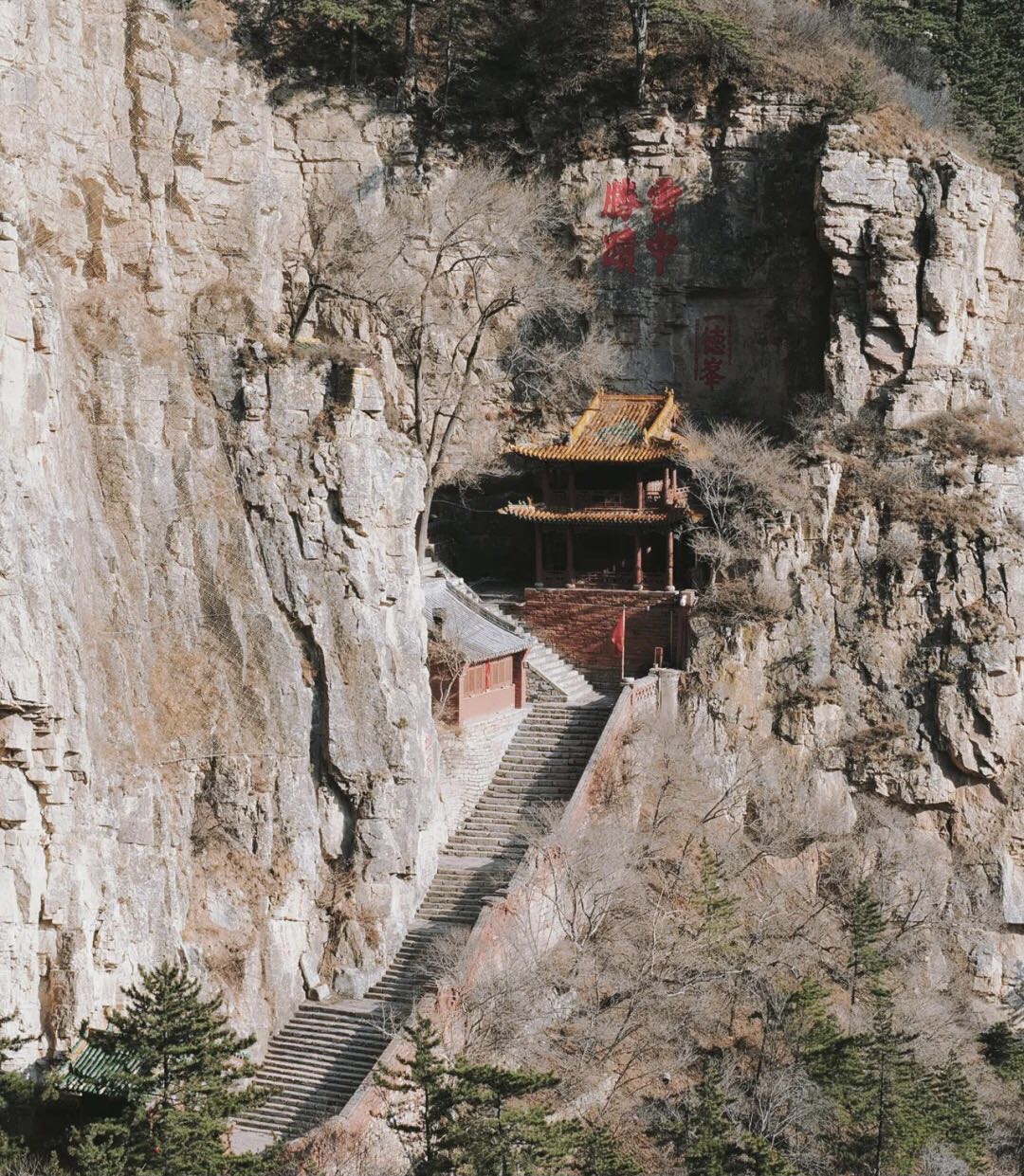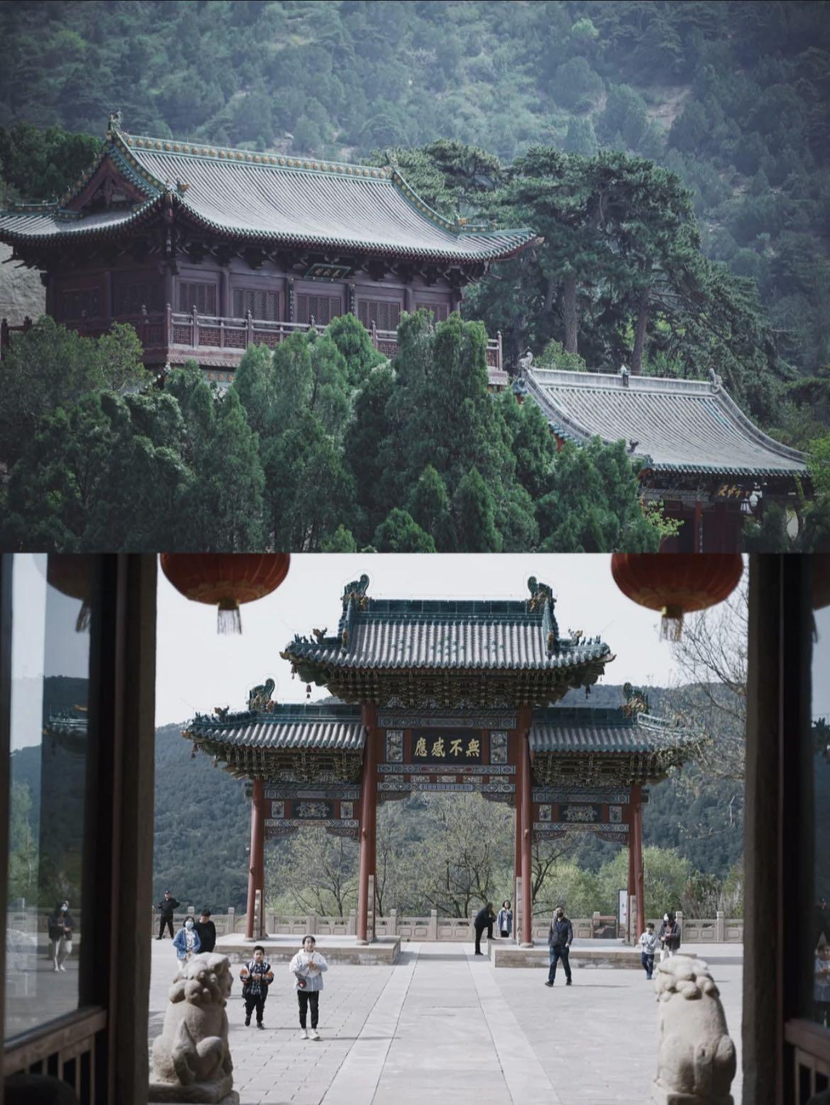 北岳庙 :北倚绝壁,面临山谷,依坡而起,登顶后可以俯瞰山谷全貌,庙里有很多在晒太阳的小猫,很可爱~