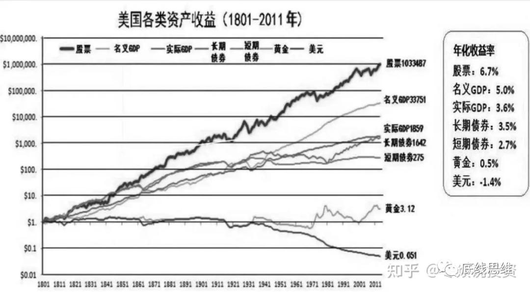 从更底层讲,所有现代增长的国家都进入信用货币时代。信用货币的本质是债务,是未来收益的估值。养老金必须与资本而不是现金挂钩,才能保持在信用扩张的过程中不被稀释。根据美国教授杰里米·J·西格尔的统计数据,拉长周期来看的话,1801年的1美元在210年后只值5美分,也就是说通货膨胀在过去210年的时间里侵蚀掉了95%的现金购买力——这就是为什么美国的养老金都在股市里。