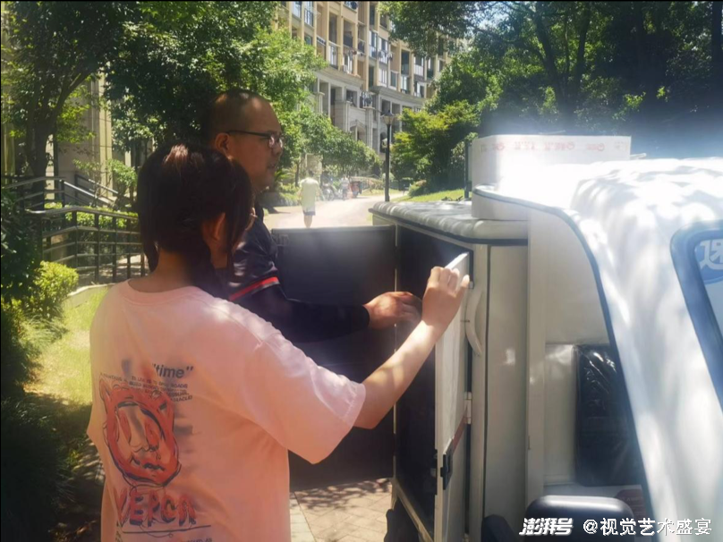 7、8月份持续的高温让快递员的工作负担大大增加,为了不影响快递员的工作,团队成员随机应变,采用多种方式进行访谈:陈茜薇、严雯斐等团队成员跟随快递小哥一起送货,不仅协助了他们工作,还对快递员的工作有了更深的了解与体悟。“实践让我知道很多人为了拥有更好的物质生活条件,常选择背井离乡,背井离乡不是被落寞渲染的,而是被激情润色的,家庭、美好生活是支撑他们奋斗的动力”团队成员严雯斐如是说。