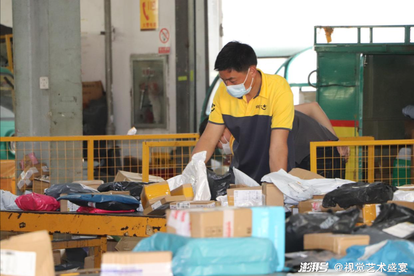图为快递员正在进行分拣,杭州师范大学李无闻供图