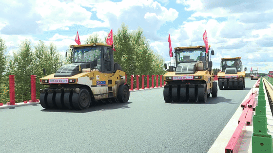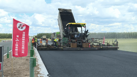 龙建路桥二公司第一项目部项目经理刘立有介绍,传统设计厚度一般都是8公分、6公分或者是4公分,但高模量沥青路段厚度会增加到12公分,能够延长公路的使用寿命。全厚式长寿命路面不仅使用寿命长,在建设过程及后续维修养护中,还能减少碳排放量30%左右。