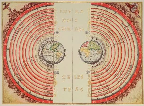 葡萄牙宇宙学家和制图师巴尔托洛梅乌·维利乌(Bartolomeu Velho)于1568年绘制的地心说宇宙模型。© Wikipedia