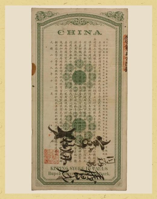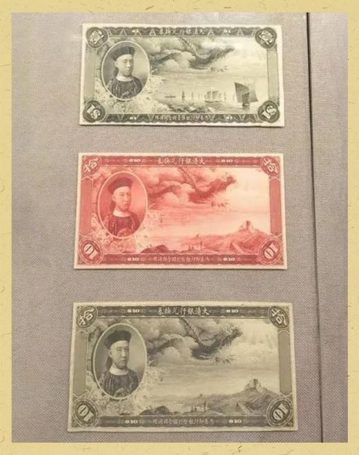 清政府对发行纸币的问题一直非常慎重,咸丰年间在财政压力下重新发行纸币,有大清宝钞和户部官票两种,分别对制钱和银两作价。光绪年间,各省督抚为扩大财力,纷纷创办官银钱局,发行纸币,以维持地方财政。光绪三十一年(1905年)中国第一家国家银行大清户部银行成立,1908年户部银行改名大清银行。宣统年间,度支部印刷局设计印制了摄政王载沣像的大清银行兑换券,有一元、五元、十元、一百元几种面额,但还未发行,清政府就灭亡了。
