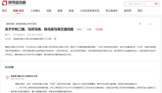 原标题:《扬马铁路、巢马城际、宁和二期……你关心的马鞍山交通规划,最新官方回复来了!》