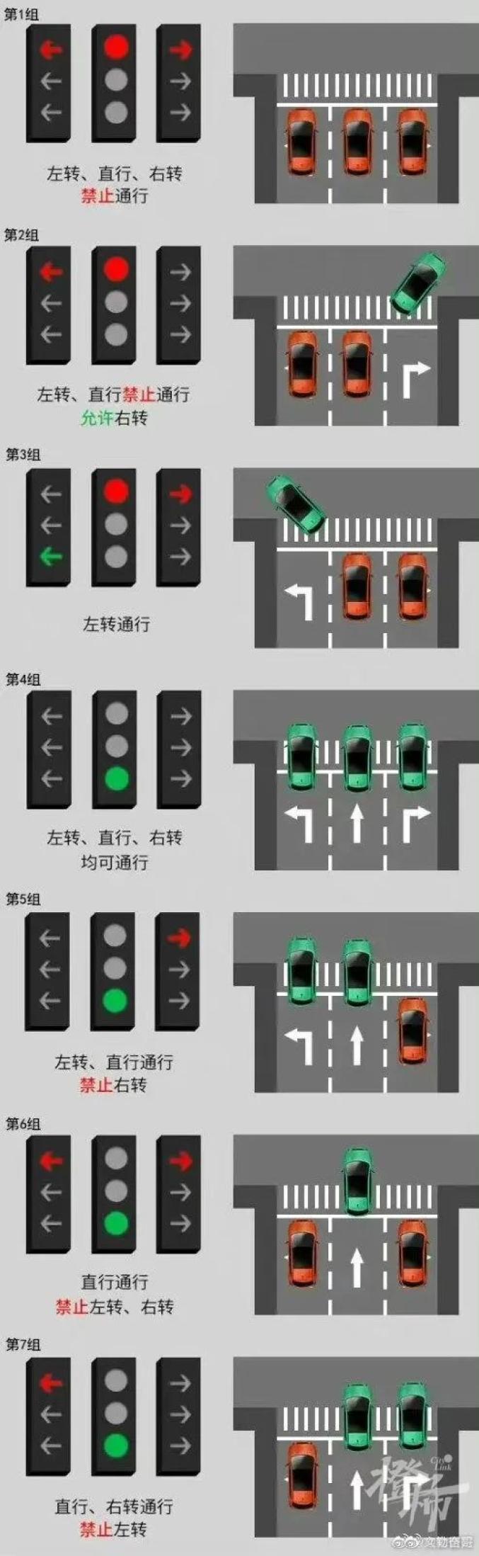 新国标对红绿灯设置组合,以下是常规组合,有两种: