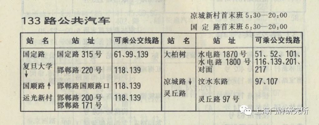 11月3日,为方便凉城新村市民出行,宝山公交公司新辟133路公共汽车,线路自国定路至凉城新村(终点站设在灵丘路,今水电路北段)。双向运营时间为5:30—20:00。