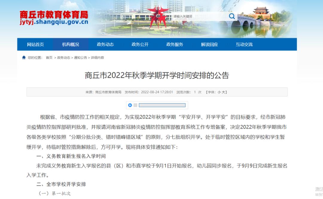 原标题:《商丘市2022年秋季学期开学时间安排的公告》