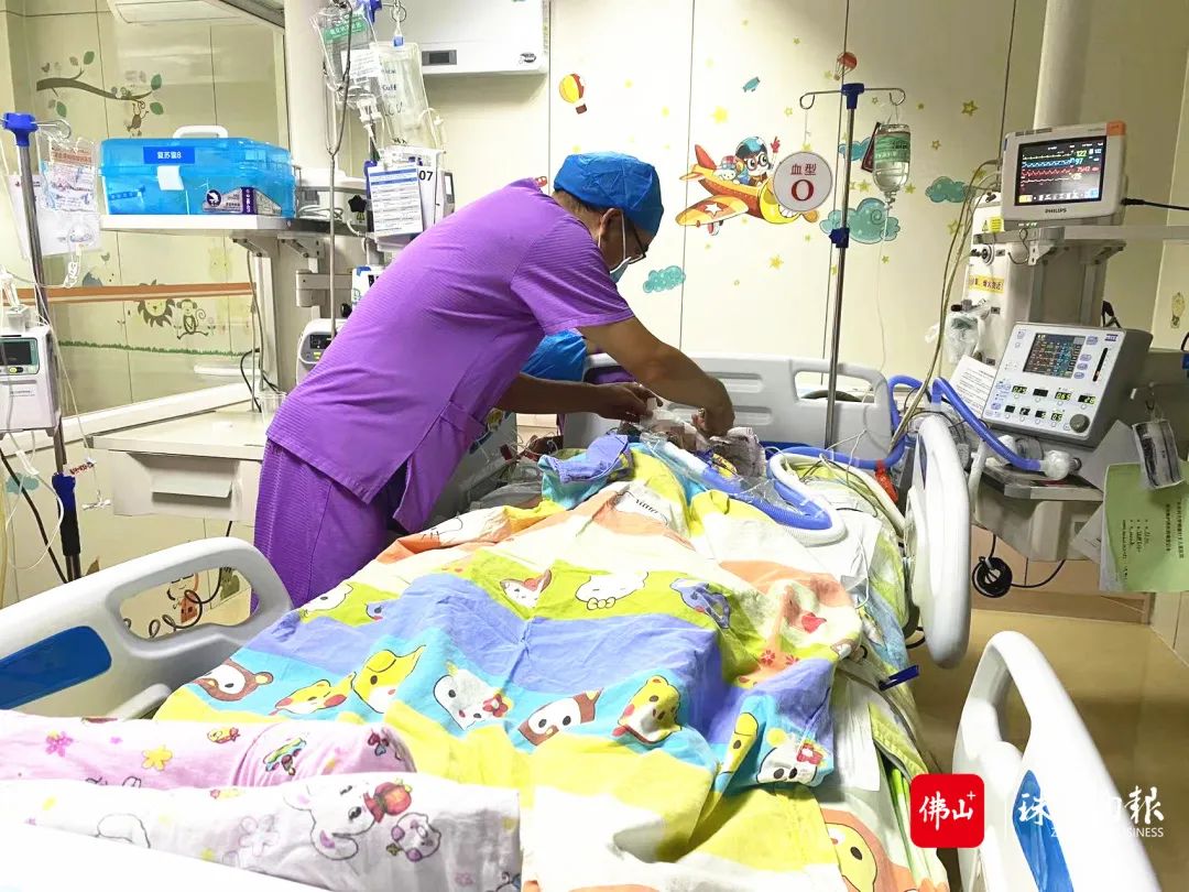 广东医科大学顺德妇女儿童医院PICU主任邓明红在密切监测男童的生命体征。