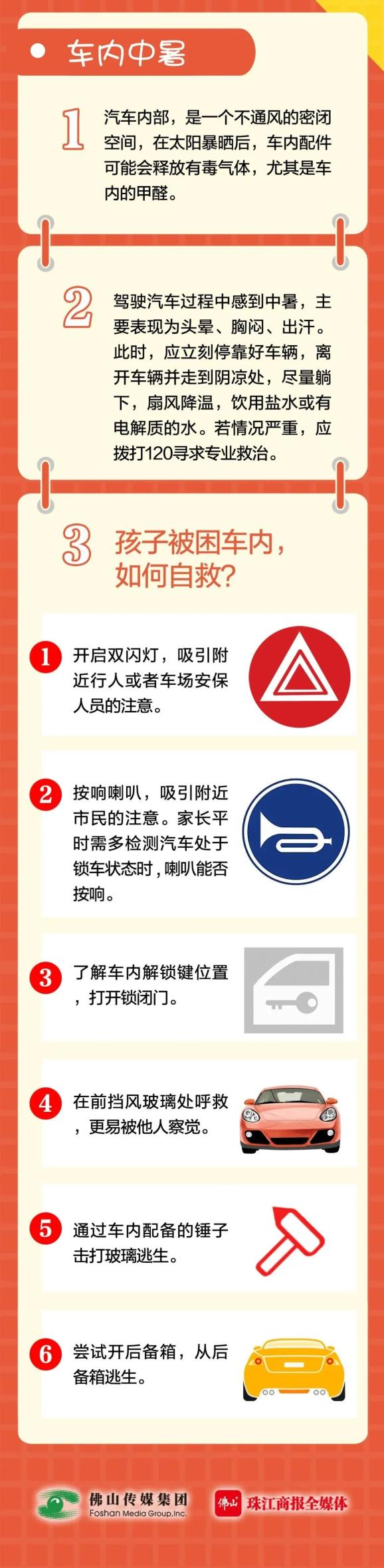 在夏季高温天气下,汽车被暴晒半小时后,车内温度可高达40℃~60℃。孩子在如此高温的密闭空间里,很快就会出现缺氧、高热、大量出汗、虚脱等症状,身体能量会被大量消耗,全身器官缺氧缺血,人体各个器官均会受到严重损伤,从而造成生命危险。