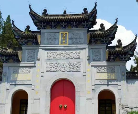 五祖寺位于黄梅东山山腰上,是典型的廊院式布局。山门前书写着对联:上接达摩一派,下传能秀两家。