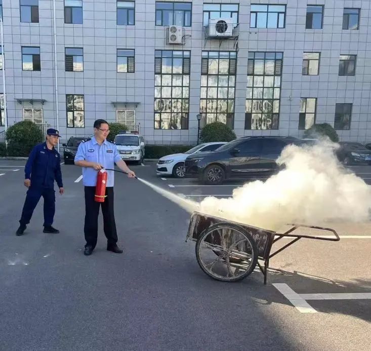 本次的消防培训由广达报警消防公司副队长吴含担任培训教官。培训内容包括消防理论知识、火灾种类分析、灭火器类别及消防器材的使用方法等,对于不同火灾使用的灭火器种类则进行了重点强调。培训结束后,干警们在吴含副队长的指导下练习使用灭火器材,并进行现场模拟突发火灾应急演练。