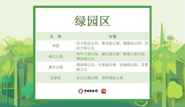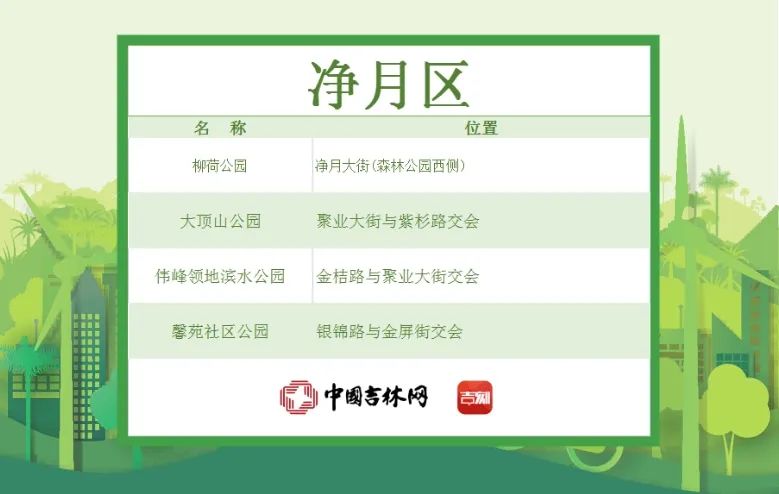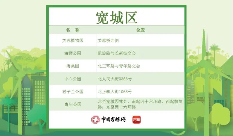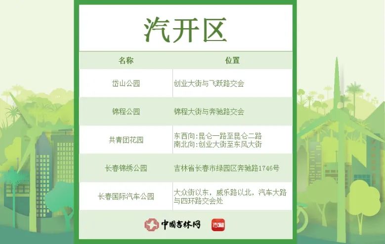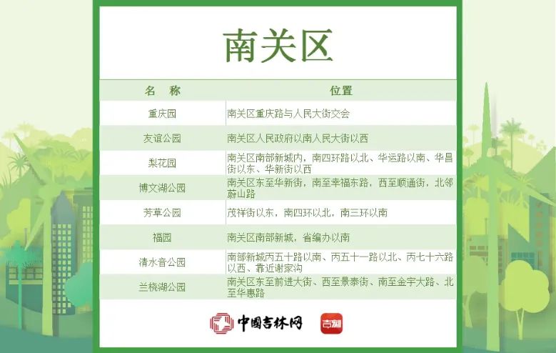 以下为中国吉林网不完全统计的部分城区的公园名单(城区排名不分先后),不妨数数你家附近有几个公园?