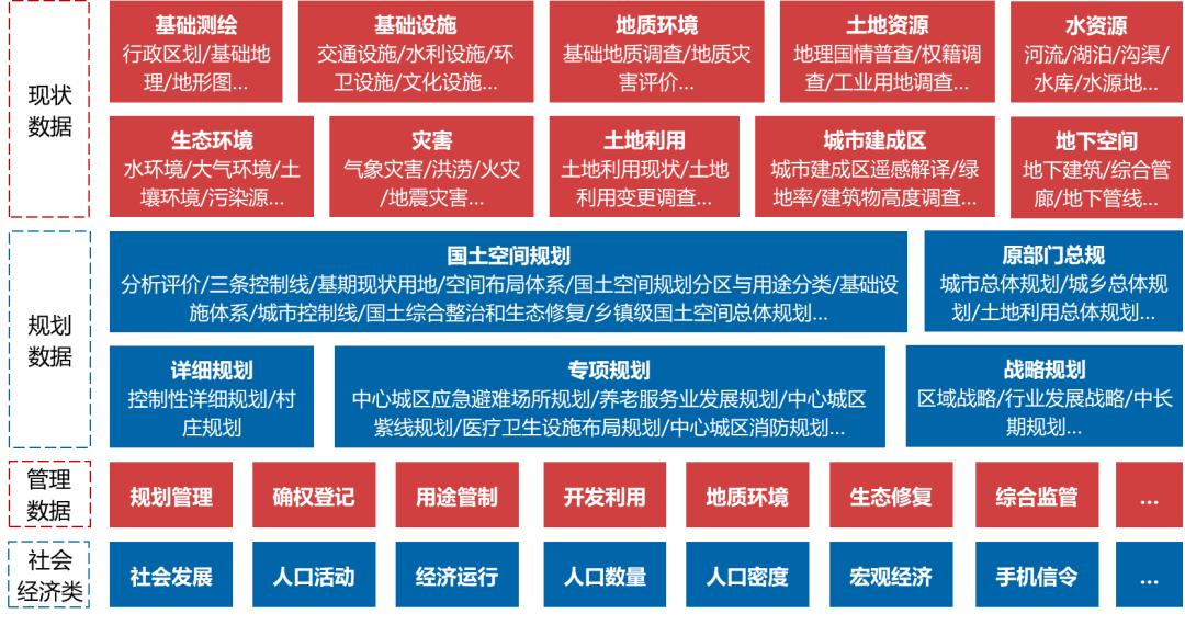 在数据资源体系方面,以上下结合的原则,构建包括现状数据、规划数据、管理数据和社会经济数据的大中小三个等级数据资源体系。在数据标准方面,明确二、三维空间数据以及新型社会大数据(手机信令数据、互联网定位数据等)的命名标准、格式标准、数据关联标准。制定数据更新机制、数据管理机制,提出全套数据汇聚、管理、更新、运维机制。