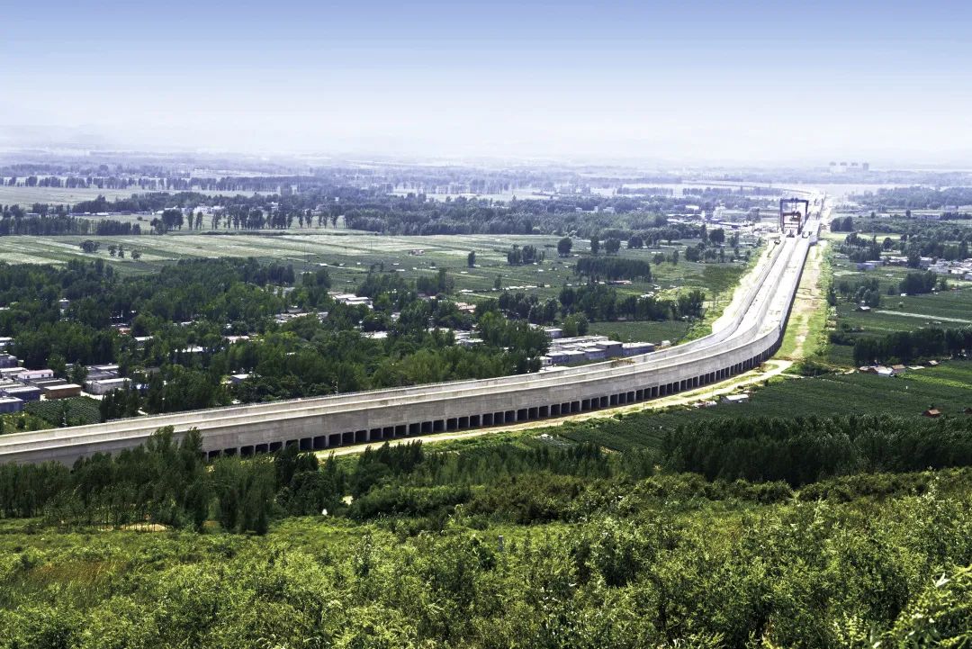 其中,沙河渡槽全长11.938公里,最大高度9.6米,单槽重达1200吨,薄壁槽身结构,采用“槽上运槽”的架设方法,是世界上综合规模最大的渡槽工程,中国能建葛洲坝集团承担了其中3.53公里的建设任务。
