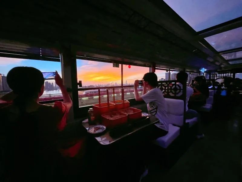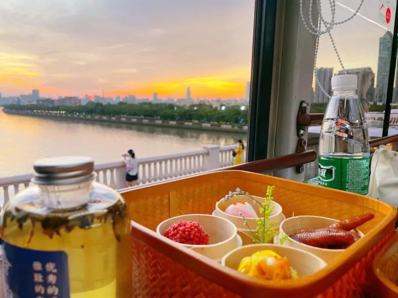 漫天红霞之下,天边白鹭飞过,星星点点,广州大桥上,车辆穿梭不息。除了品尝传统广式美食,“粤陶巴”车窗外展现的是最美广州城市景观画卷,海心桥、珠江、广州塔、星海音乐厅、广东美术馆等城市地标迎面而来。在40-50分钟的移动游览路线中,乘客们一边享用特色美食,一边叹赏两岸美景。
