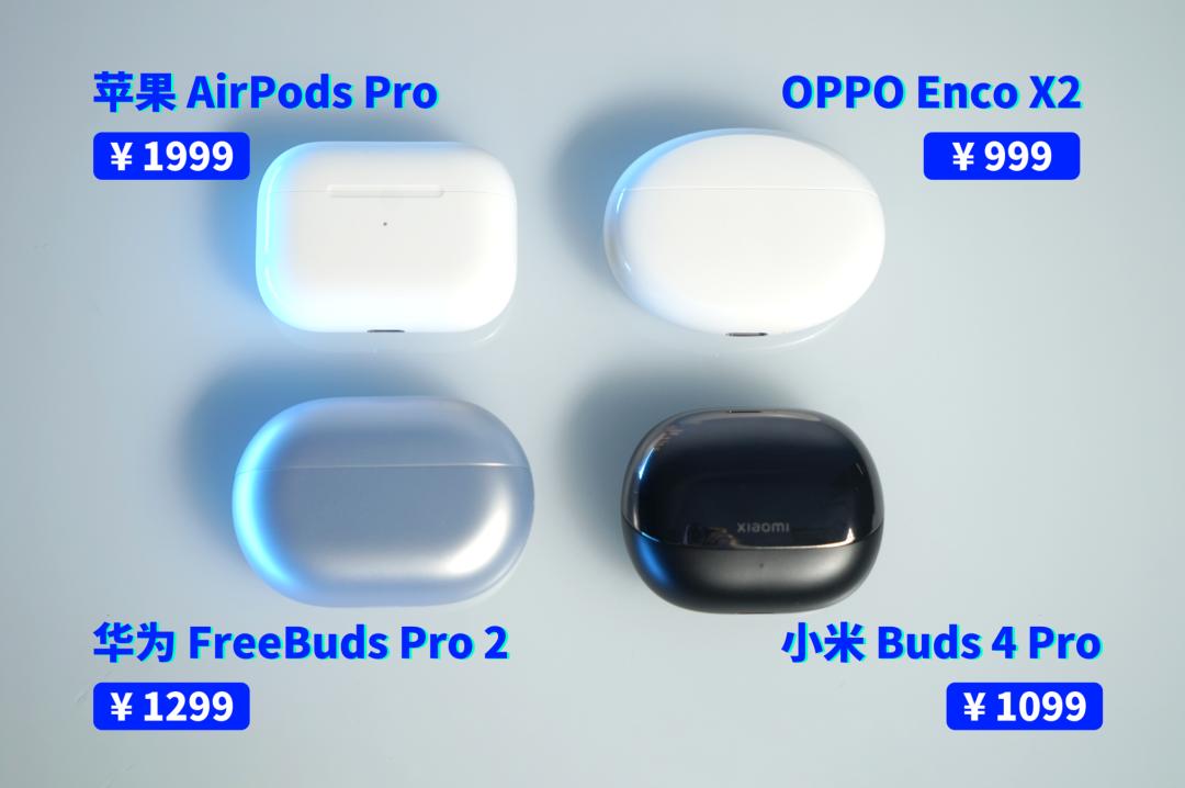 它们分别是华为 FreeBuds Pro 2、小米 Buds 4 Pro、OPPO Enco X2 以及苹果 AirPods Pro,售价从 999 元到 1999 元不等。