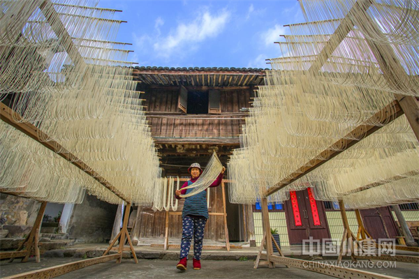细如青丝白如雪。在新合,有一项传承千年的手艺——“新合索面”。相传大宋年间,皇上下圣旨,派宰相吕夷简封游击将军钟厚为忠救王时,钟氏族人以索面馈赠,带至皇宫,受到群臣百官、文人雅士的青睐。传说虽已无法考证,但能肯定的是,新合乡这根面渊源深厚。如今,全乡有300多户、1000余人从事索面加工制作行业,其中以引坑村尤甚,每到冬日晴暖天,走进引坑村,到处弥漫着淡淡的索面香,家家户户晾晒索面则成了一道独特的风景。