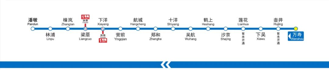 16座车站依次为潘墩、林浦、樟岚、梁厝、下洋、营前、航城、郑和、十洋、吴航、鹤上、沙京、莲花、下吴、壶井、万寿。其中莲花、壶井站暂缓开通,本次开通运营14个车站。