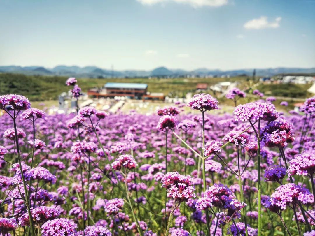 贵阳高坡云顶花海是身藏在城市之间的独特,也是你和贵州夏末初秋的一份约定。蔚蓝的天、清爽的风,在微风中摇摆舞姿的马鞭草诱人又多姿。这片紫色浪漫,花期预计可以持续到10月份左右。