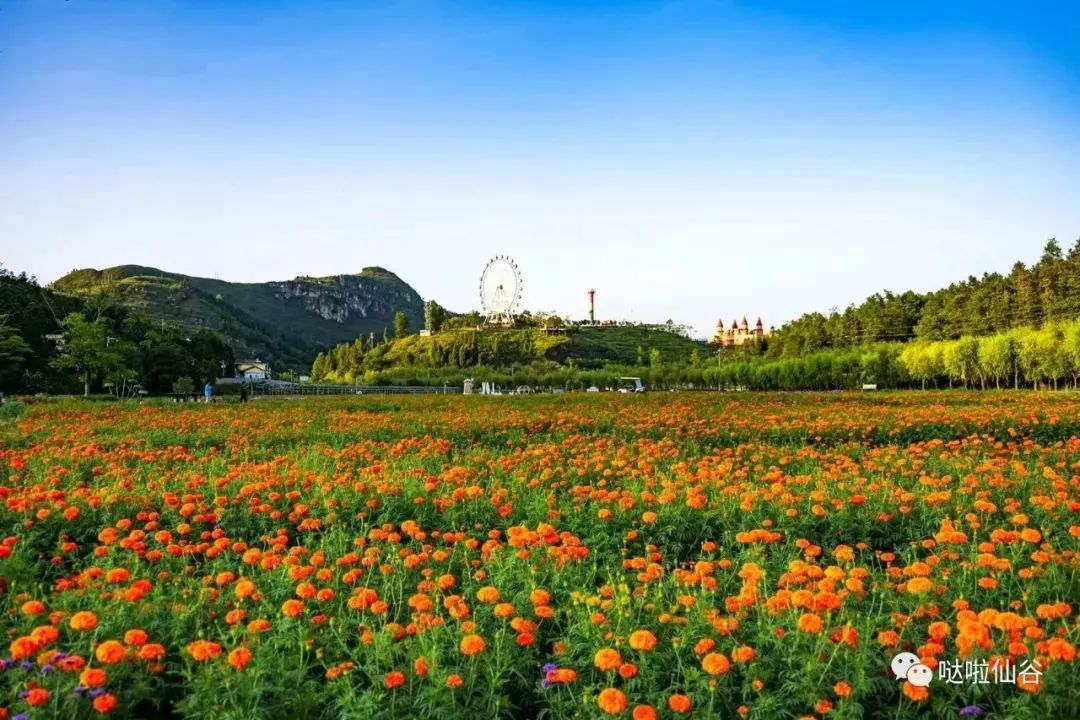 所谓“阳光正好,微风不燥”。初秋的凉爽与花田的清香相融,带上你的相机和朋友,在超两百亩的盘州哒啦仙谷七彩花田开启一段户外赏花之旅吧。清晨,漫步在花田小路上,晶莹的露珠在朝阳的照射下熠熠发光;午间,大地上万物都烫了金似的,在嫩绿颜色的表层,浓浓地染上了一抹橙黄;初秋的黄昏开始来的渐渐早了起来,还没等花田中被日光蒸发起的水气消散,夕阳就坠入了花海。