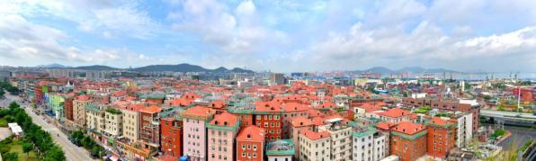 一片美丽的红色坡顶映入眼帘