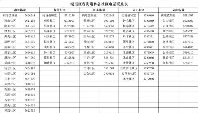 湖里区各街道和各社区电话联系表