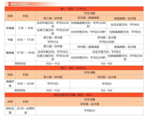 1. 7号线祁华路站至花木路站区段每周五、周六延长运营时间。