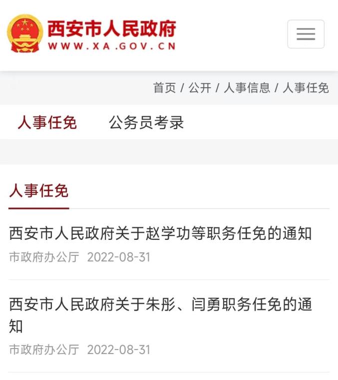 2022年8月31日西安市第十七届人民代表大会常务委员会第三次会议任命: