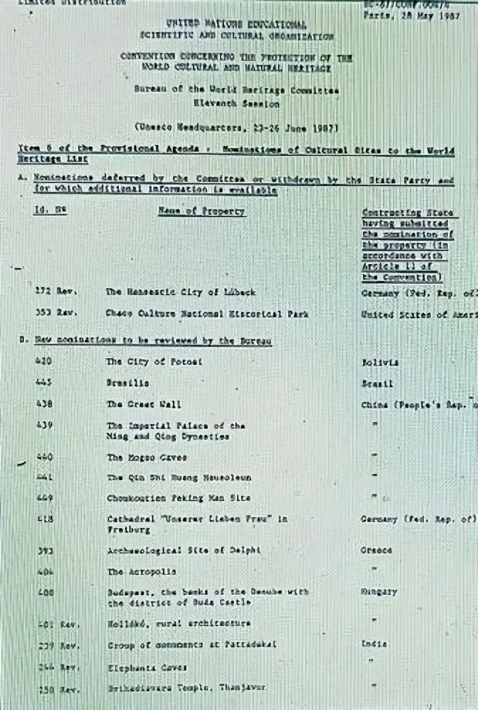 1987年6月23—26日,联合国教科文组织世界遗产委员会召开第十一次全体会议。在会议审议的世界文化遗产提名清单(Nominations of Cultural Sites to The World Heritage List)里,首次出现了来自中华人民共和国的新面孔。其中,编号为440的申遗项目尤为引人注目,它就是国际学术界魂萦梦绕的敦煌莫高窟。